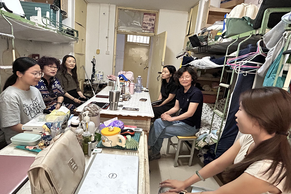 在6号学生公寓,王玉花与学院毕业生亲切交流,全面了解大家的就业情况,鼓励大家无论是继续深造还是入职就业,都要坚守梦想,在各自发展路上做最好的自己。
