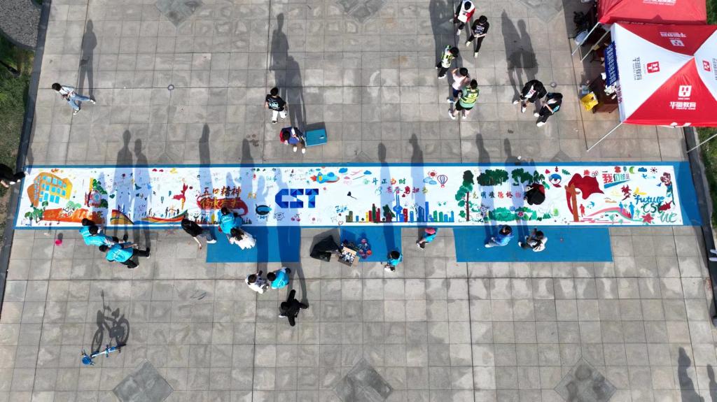 燕山校区喷泉广场开展了一场别开生面、色彩纷呈的“绘梦五四 共筑青春巨画”活动。