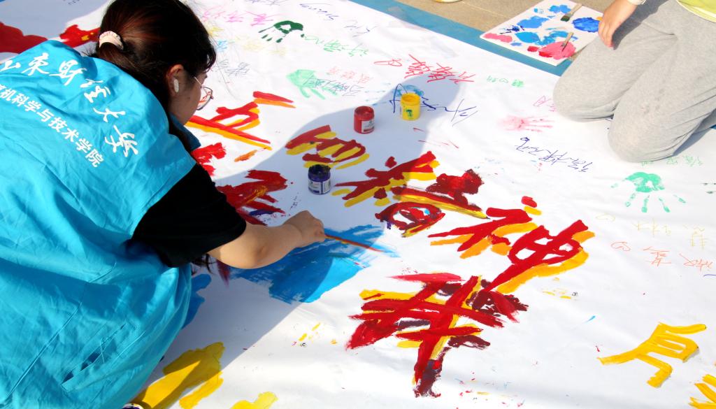 学院党委书记杨春丽,学工办主任任楠,团委书记李晨露,辅导员门晓慧和学院教师代表、全体学生均参与了此次活动,热情投入。大家齐心协力,接过画笔,一笔一划地勾勒出这幅富有生命力与创造力的青春画卷,让五四精神在笔尖流转,于画面中绽放。