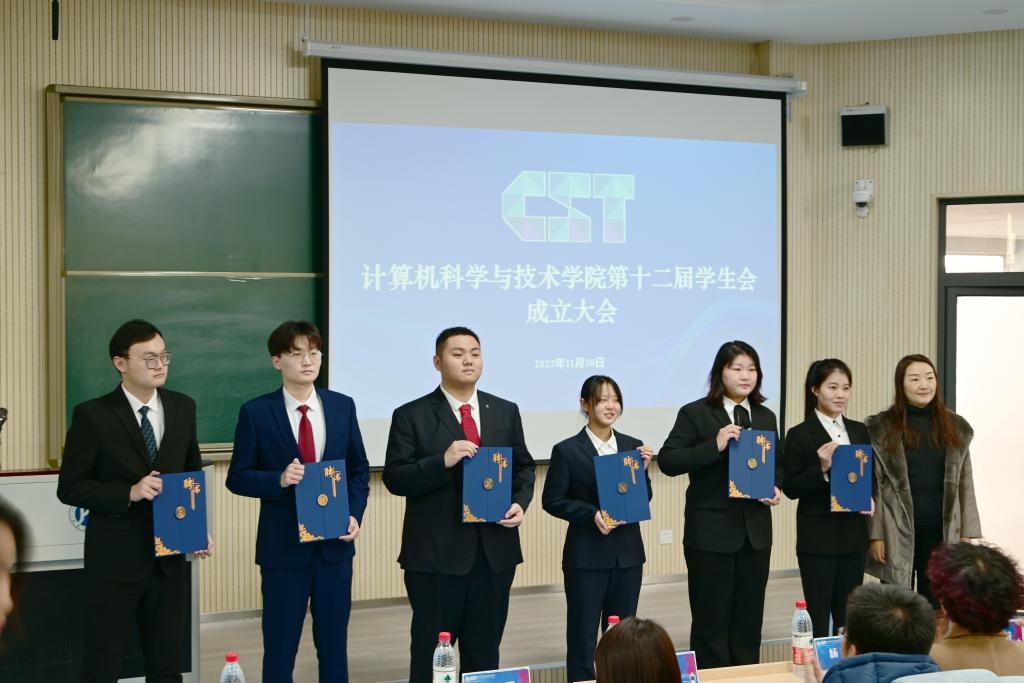 学院团委书记李晨露宣读第十二届学生会全体成员的名单,屏幕上同步播放着学生会各部门的剪影,秘书处的“‘秘’而有致、‘书’而不漏、‘处’事坦然、行稳致远”,文体部的“文艺绽于玫瑰至上,体育凝于雪山之巅”……一张张崭新的笑颜展露在大家面前,他们青春活力,满怀信心,团结友爱,传承创新。