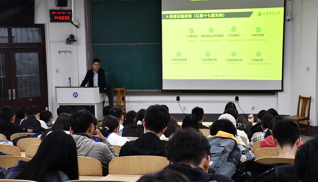 为营造学院良好的创新创业竞赛氛围,帮助学生更清晰直观了解大学生创新创业竞赛,并在备赛和参赛中做好项目成果转化升级,4月22日下午,学院举办大学生创新创业竞赛介绍和项目成果转化专题讲座,本次讲座特邀校团委老师李建强担任主讲,2019级、2020级部分学生和项目负责人参加了本次讲座。