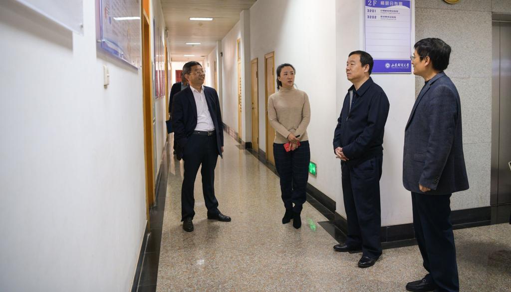 10月31日上午,校党委书记王邵军一行莅临计算机科学与技术学院调研指导。王邵军一行首先实地检查了山东省数字媒体技术重点实验室,现场听取了刘慧教授关于实验室建设工作的汇报,随后查看了人才工作室、科研团队报告厅等办学设施,并在学院1406会议室召开座谈会。学院党政领导班子成员、特聘教授张彩明、重点实验室主任刘慧、泰山学者青年专家蹇木伟、省优势学科人才培育团队负责人崔超然等参加了座谈。