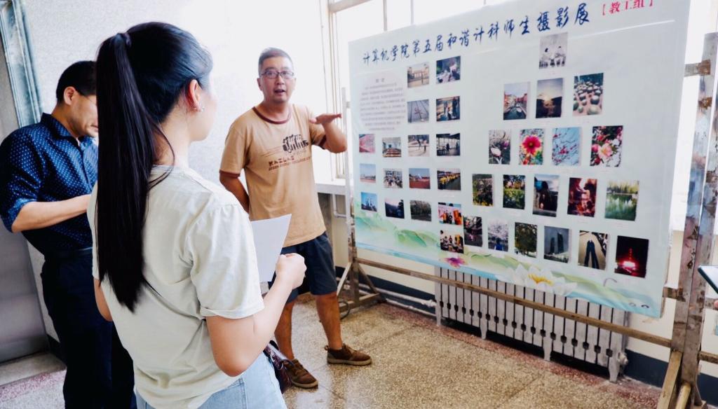为培育弘扬和践行社会主义核心价值观,充分展示学院师生良好的精神风貌和文化建设成果,进一步丰富活跃学院师生的文化生活,6月11日,由学院工会举办的第五届和谐计科师生摄影展在燕山校区一号教学楼四楼大厅顺利进行。邀请艺术学院张建勇老师担任评委。