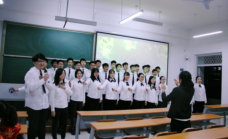 18级同学以班级为单位分为10支参赛队伍。比赛中,各方队采用了新颖的队形,融入了舞蹈以及器乐,激昂的歌声和极具风采的创意设计赢得了评委和观众们的热烈掌声。