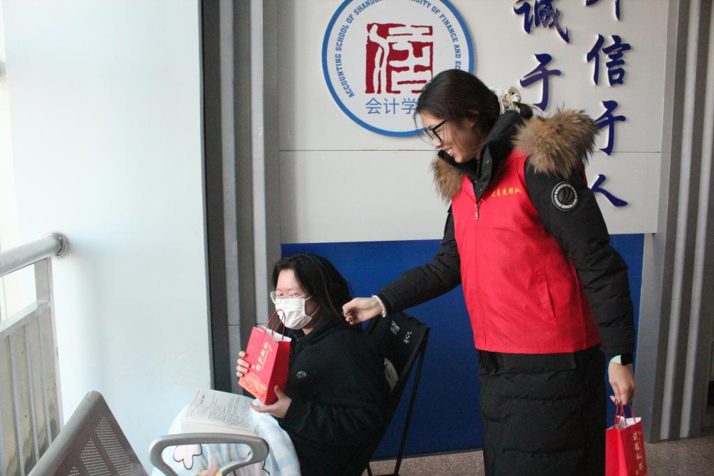 作为此次活动的参与者,学生会主席翟义卓分享到:从接收物资、清点分装到轻轻递上礼物,每一个环节都让我们感受到一种温暖的传递。最触动我的,是埋头苦读的学长抬头瞬间眼里的光——那是一种被理解的感动,是一种疲惫时获得支持的释然。作为学生会成员,能为大家做这些小事,我们感到无比荣幸。
