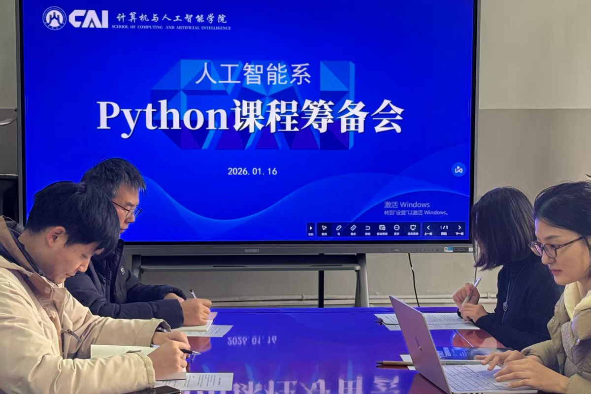 “Python程序设计”课程组召开教学筹备会。会议旨在明确课程定位,优化教学内容与考核体系,探索适应人工智能时代发展的教学新模式。人工智能系主任李防震及课程组全体授课教师参加会议。