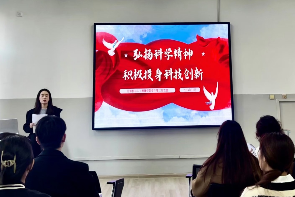 门晓慧带领全体党员通读了习近平总书记给中国国际大学生创新大赛参赛学生代表的回信。回信强调,创新是人类进步的源泉,青年是创新的重要生力军。希望广大青年弘扬科学精神,积极投身科技创新,为促进中外科技交流、推动科技进步贡献青春力量。