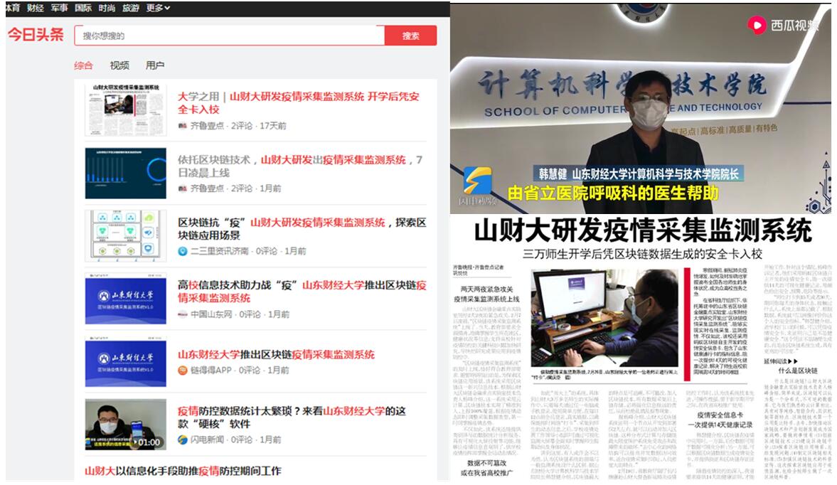 经过一年半的运行,系统运行流畅,师生员工反应良好,该系统对全省教育系统监测疫情具有现实意义,也可为省委省政府决策提供技术支撑。系统上线发布后,先后由齐鲁网、新闻头条、大众日报、山东卫视、新浪网等50多家媒体报道,产生了良好的社会影响。